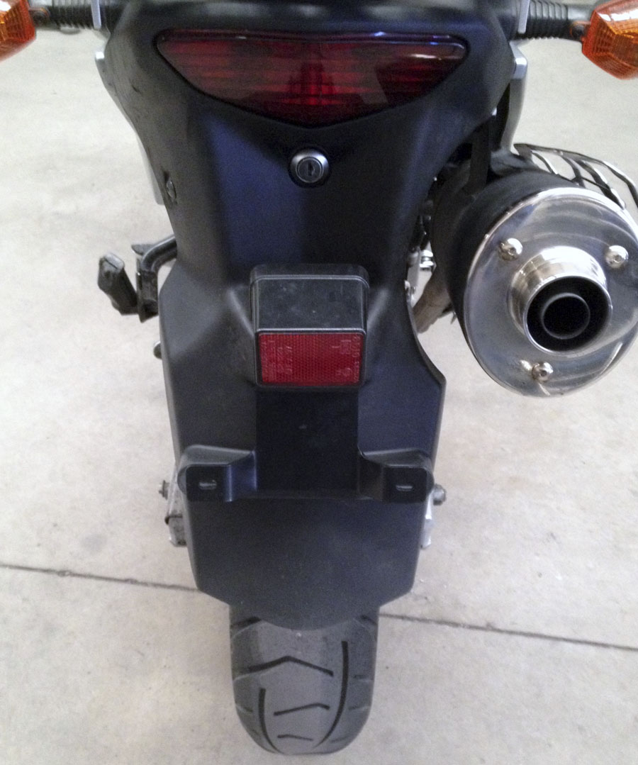 Soporte para matrícula muy ligero, adaptado para colocar los intermitentes y los LED de la matrícula, utilizando la instalación eléctrica original y sin taladros, se monta sobre los tornillos originales.